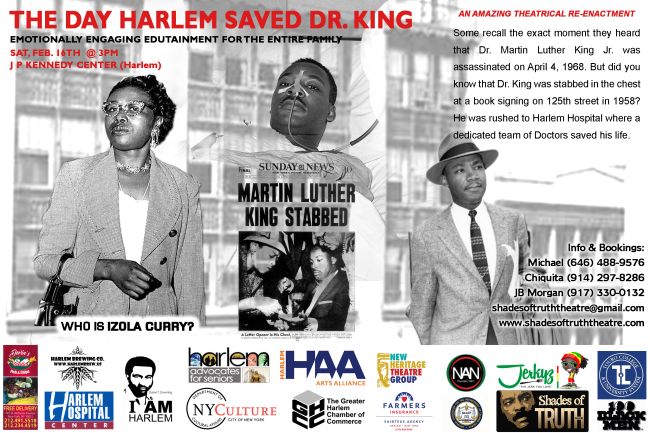 Shades of Truth Theatre and Voza Rivers/ New Heritage Theatre in association with The Lt. Joseph P. Kennedy Community Center present The Day Harlem Saved Dr. King written and directed by Michael Green