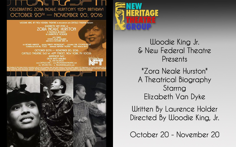 Directed by Woodie King, Jr., the play will be in celebration of Hurston's 125th birthday and will star Elizabeth Van Dyke as Zora and Joseph Edwards as Langston Hughes, Richard Wright, Alain Locke, Wallace Thurman,and Herbert Sheen.