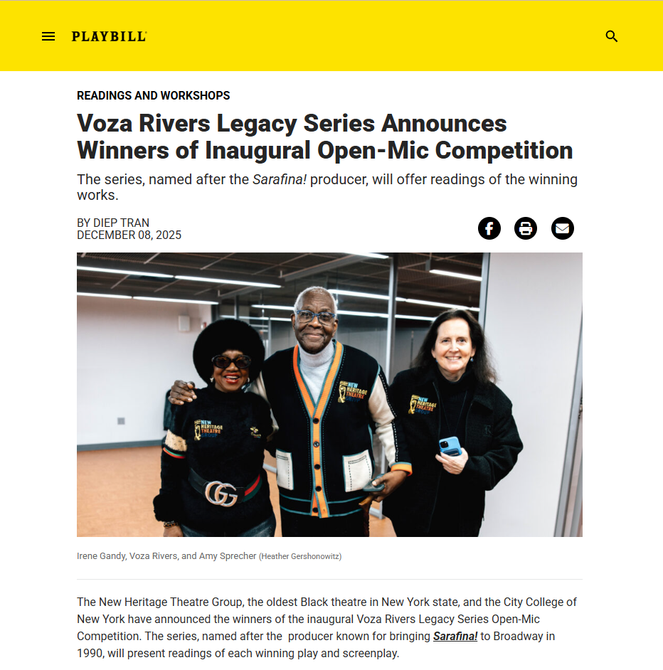 This series is supported, in part, by West Harlem Development Corporation, New York State Council on the Arts, New York City Department of Cultural Affairs, in partnership with the City Council, the Nederlander Organization, and the Shubert Organization.