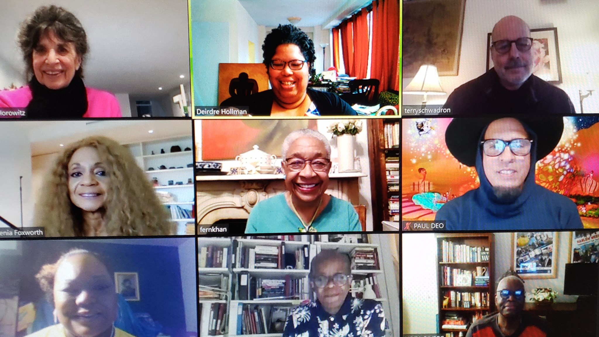 A recent meeting of the advisory shows l-r: Barbara Horowitz, Founder & President, Community Works, Deirdre Hollman, educator, Terry Schwadron, journalist, Eugenia Foxworth, Foxworth Realty, Fern Khan, former head of Bank Street College, Paul Deo, muralist, Dietrice Bolden, IMPACT Repertory, Lee A. Daniel, writer, Voza Rivers, executive producer, New Heritage Theatre Group. Not pictured, Daniel Carlton, performing teacherm, Kathy Benson Haskins, writer and former museum curator, David Lackey, Whirlwind Creations and Michael Davidson.