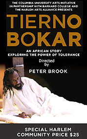 Bokar is directed by Peter Brook and was adapted by Marie-Hélène Estienne from the great West African writer Amadou Hampaté Bâ's The Life and Teaching of Tierno Bokar: The Sage of Bandiagara. The piece features music by Toshi Tsuchitori and Antonin Stahly and lighting design by Phillipe Vialatte. Sotigui Kouyaté, from Burkina Faso, who appeared in Brook's Mahabharata, The Tempest, and other productions, plays Tierno Bokar.