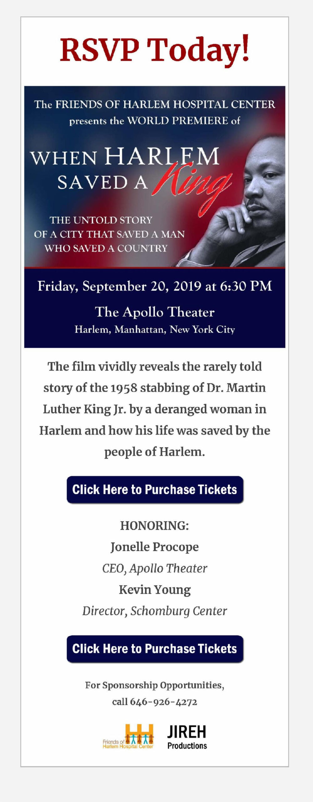 We invite you to come out and support THE FRIENDS OF HARLEM HOSPITAL CENTER presentation of the WORLD PREMIERE